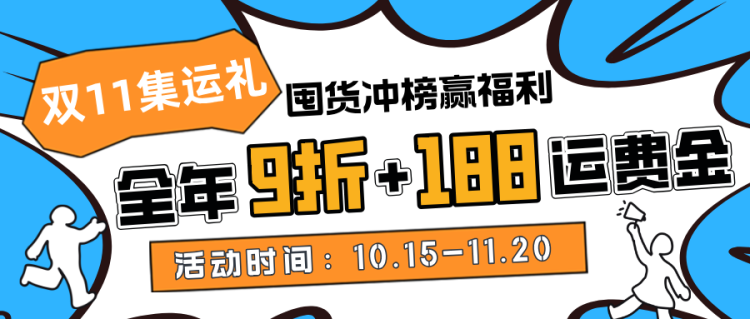 双11集运挑战!寄包裹解锁阶梯奖励,冲榜前三领¥188+全年9折!快冲!!!