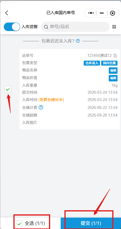 3、跟踪包裹入库状态;