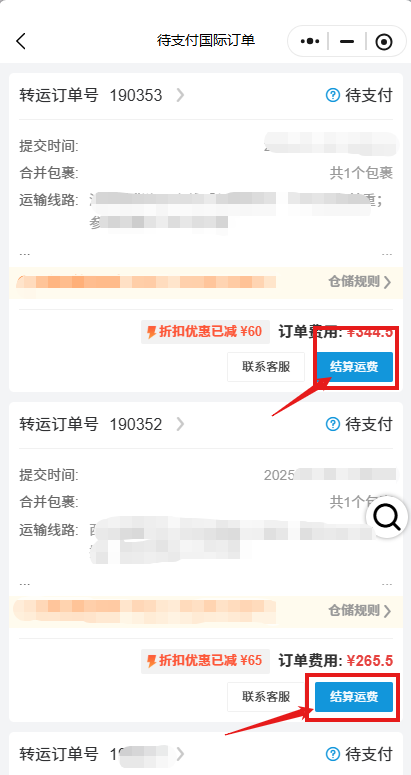 6、确认包裹转运信息,支付转运费用后,随即发货;