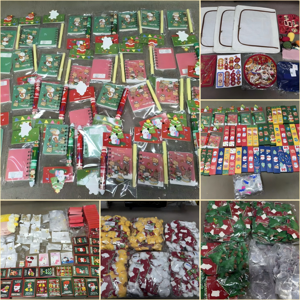 普货:圣诞红毛衣、鹿角发箍/圣诞头饰、针织围巾、毛绒袜子、保暖手套、圣诞迷你树(非植物)、贴纸、门挂、挂件装饰、姜饼人、马克杯、贺卡……
