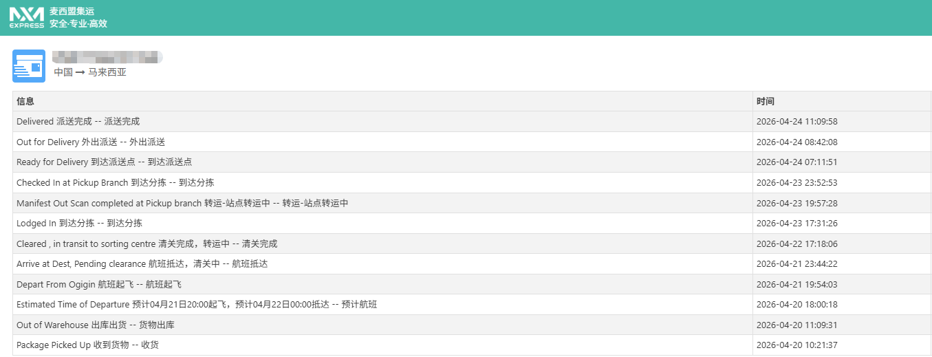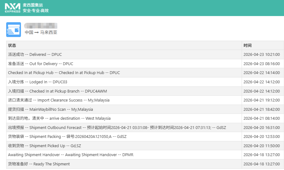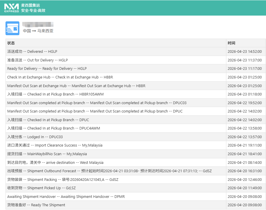 ▶️马来西亚4月整体运速稳定高效,下旬空运末端全线恢复Line Clear派送,96%的包裹都在参考时效以内完成签收。